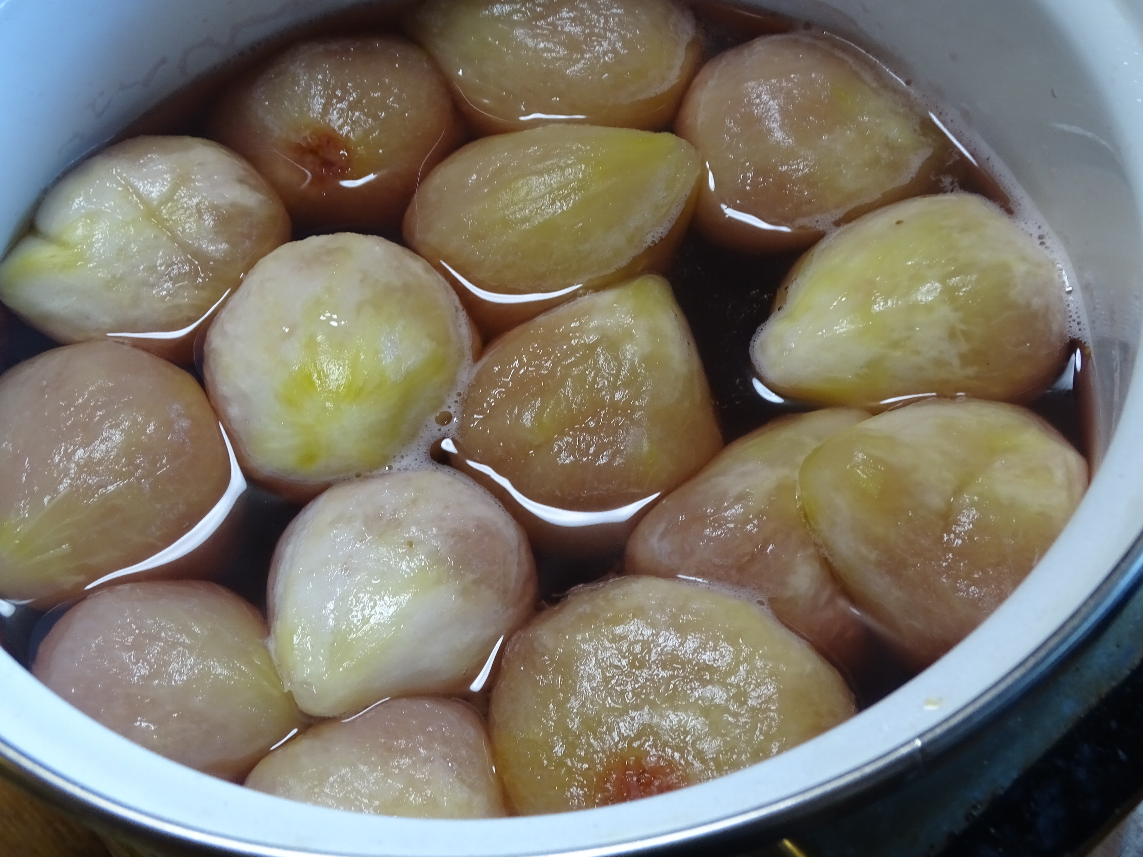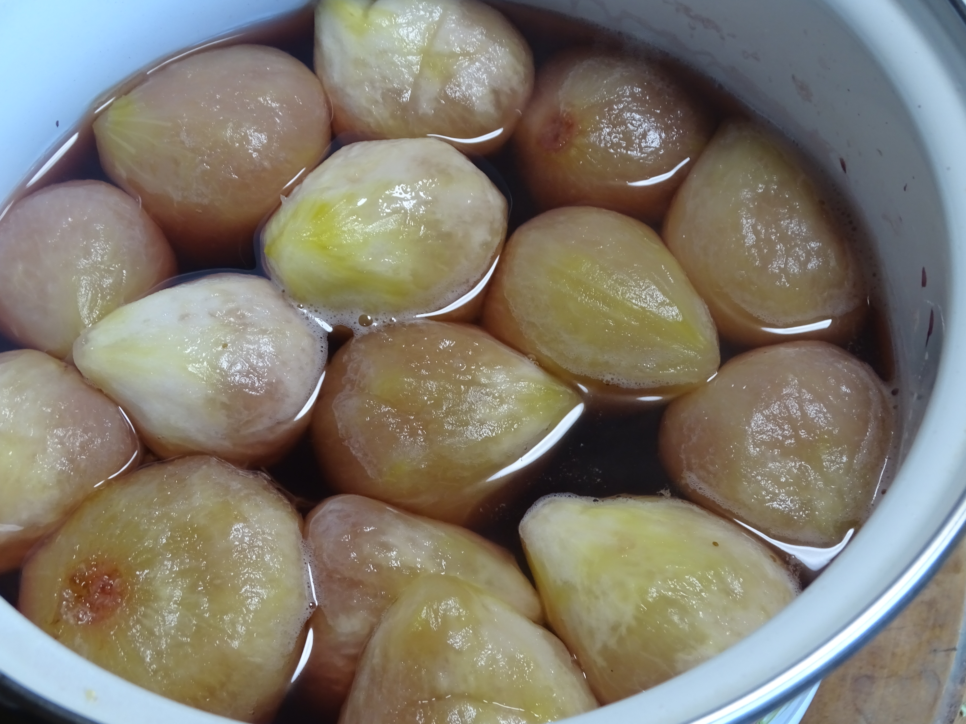 作りました 昨日の無花果を今朝は皮を剥いて・・・・ 分量は・・・適当に・・・赤ワインがちょっと少なかったかも ・・無花果のコンポートを作ってみました コンポートを作るのは久しぶりです 今出来上がったばかりなのでこのまま冷やして・・・ 作る人は皮をつけたままで作る人もいますよね・・・でも私はなんか皮を剥きたくなってしまって 後は冷めたら味見をしてみますかな・・・ という事でこれから今日の食材の買い出しに・・・・