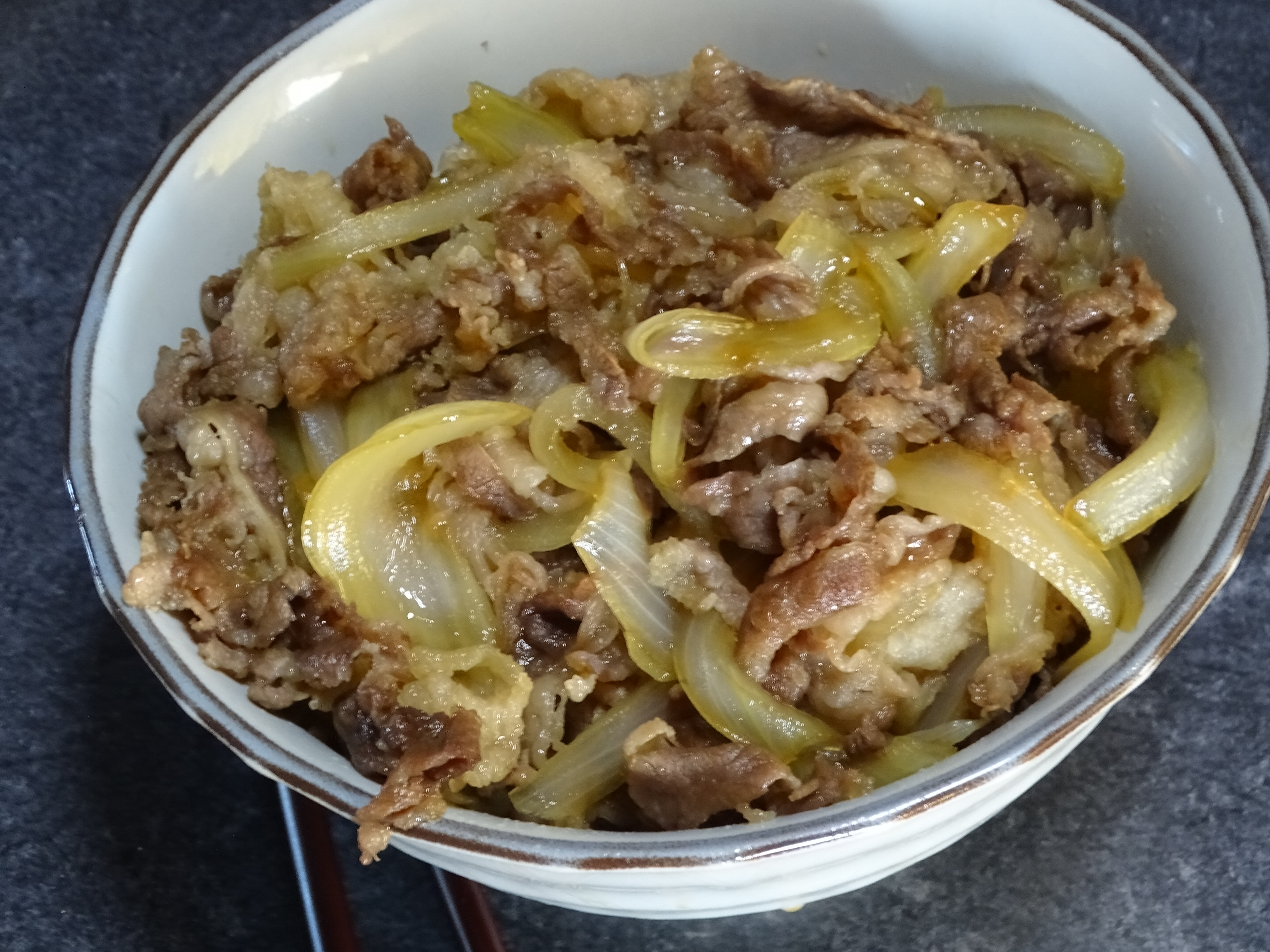 昼&夕食・・ 今日の食事は・・牛丼・・にしました けど・・なんか近くのスーパーでは美味しそうな牛バラ・スライスを置いてないんだけど まぁぁ しょうがないかぁぁ・・ とりあえずは・・久しぶりかな・・・・ あぁぁぁ・・冷蔵庫にあった紅生姜・・出すのを忘れてた まぁぁ次に何かあったら使うか・・・ フウゥゥゥゥ・・・食ったぁぁぁぁ・・・・ご馳走様でしたぁぁぁ