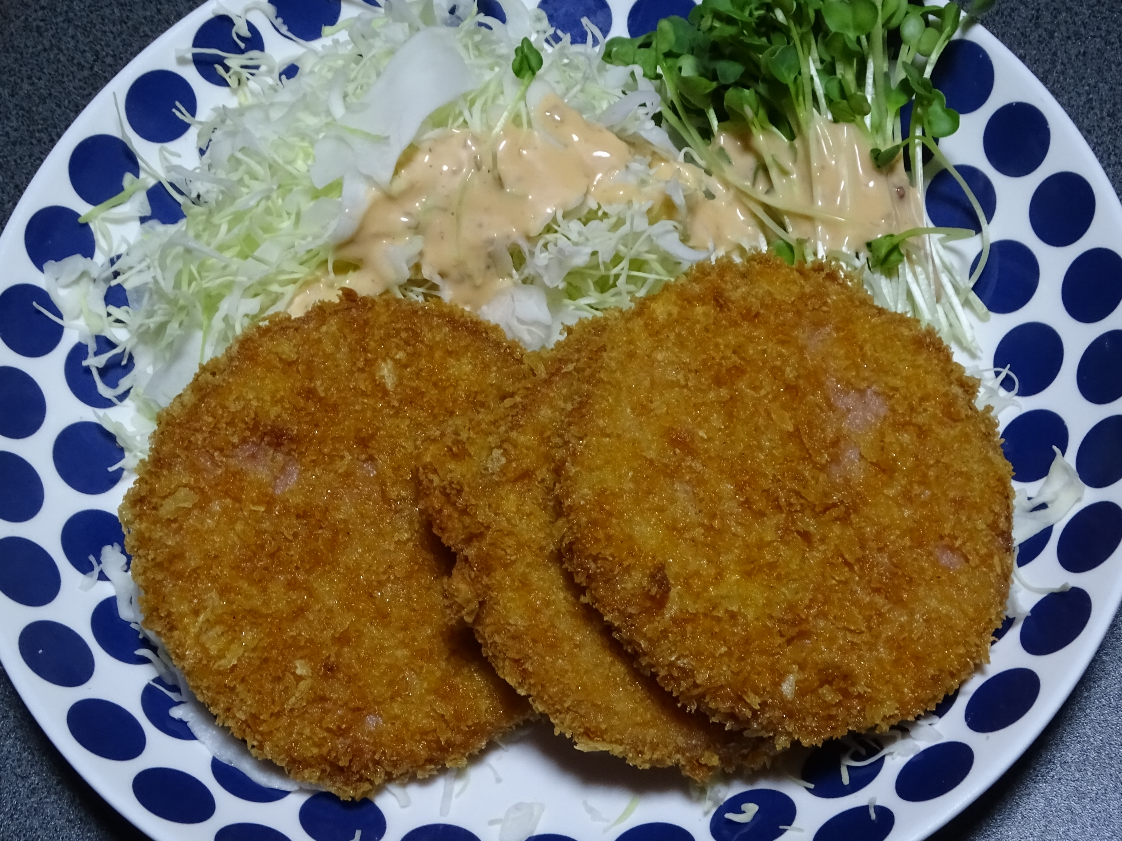 昨夜の食事は・・・スーパーで厚さと見た目のいいハムをみつけたので・・・・