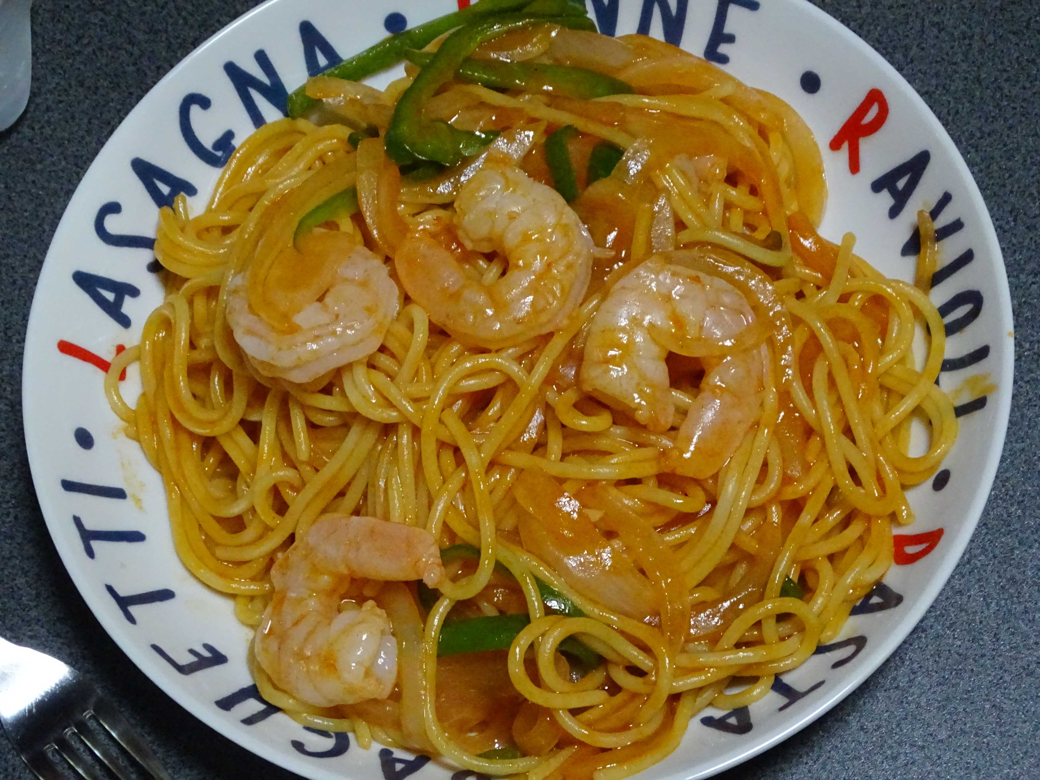 今日の夕飯は 今日の食事はパスタに・・・・で冷蔵庫をみたら・・ベーコンを切らしてた・・ という事で今日はエビにしてみました・・・ あ~~~エビをもう5~6個入れてもよかったかも 本当はそうめんが食べたかったんだけど・・・そうめんは次でもいいかなぁぁ・・・・で 最近は面白いTV番組が無くて・・・今日も早々と就寝になるんでしょうねぇぇ