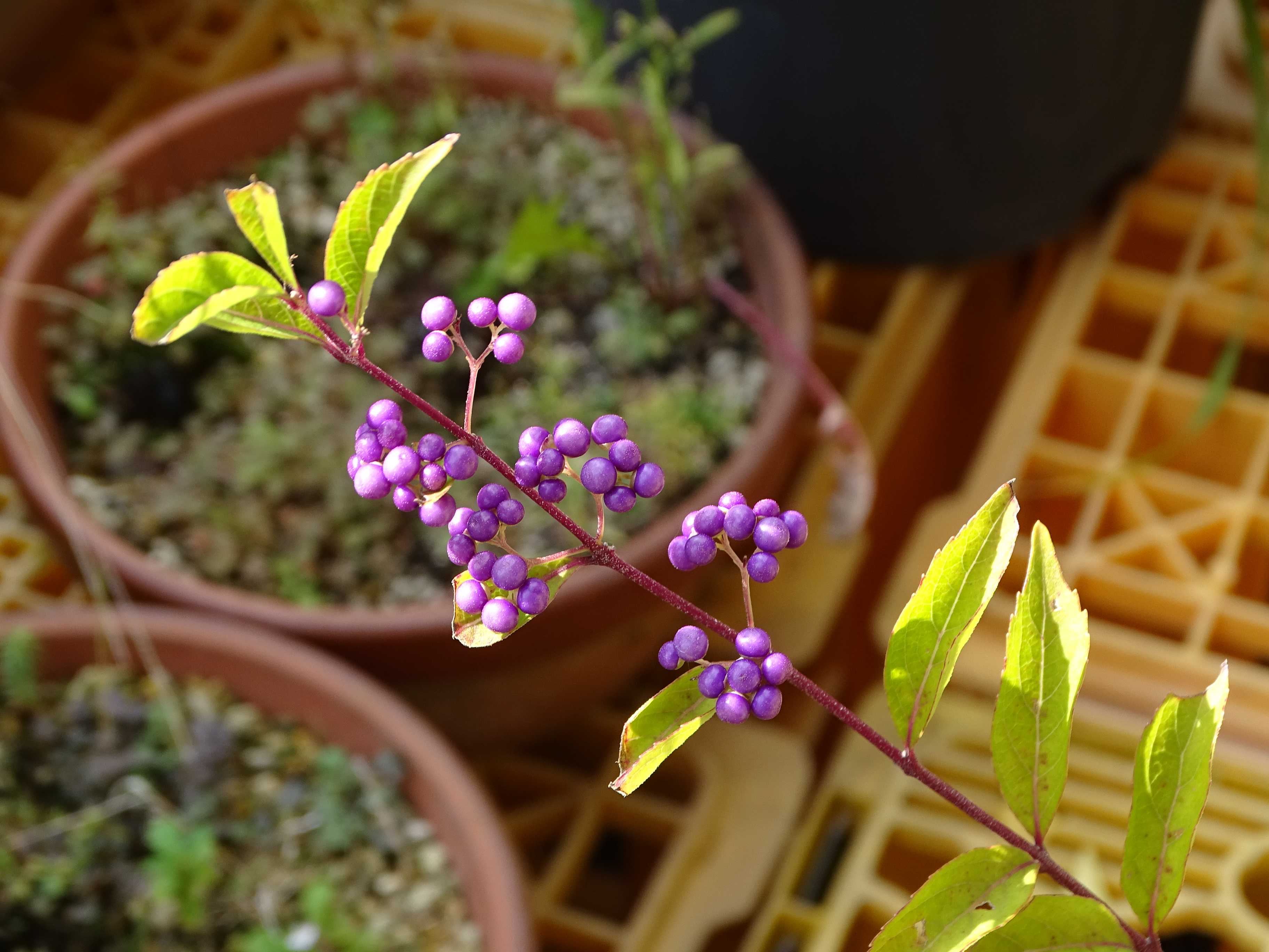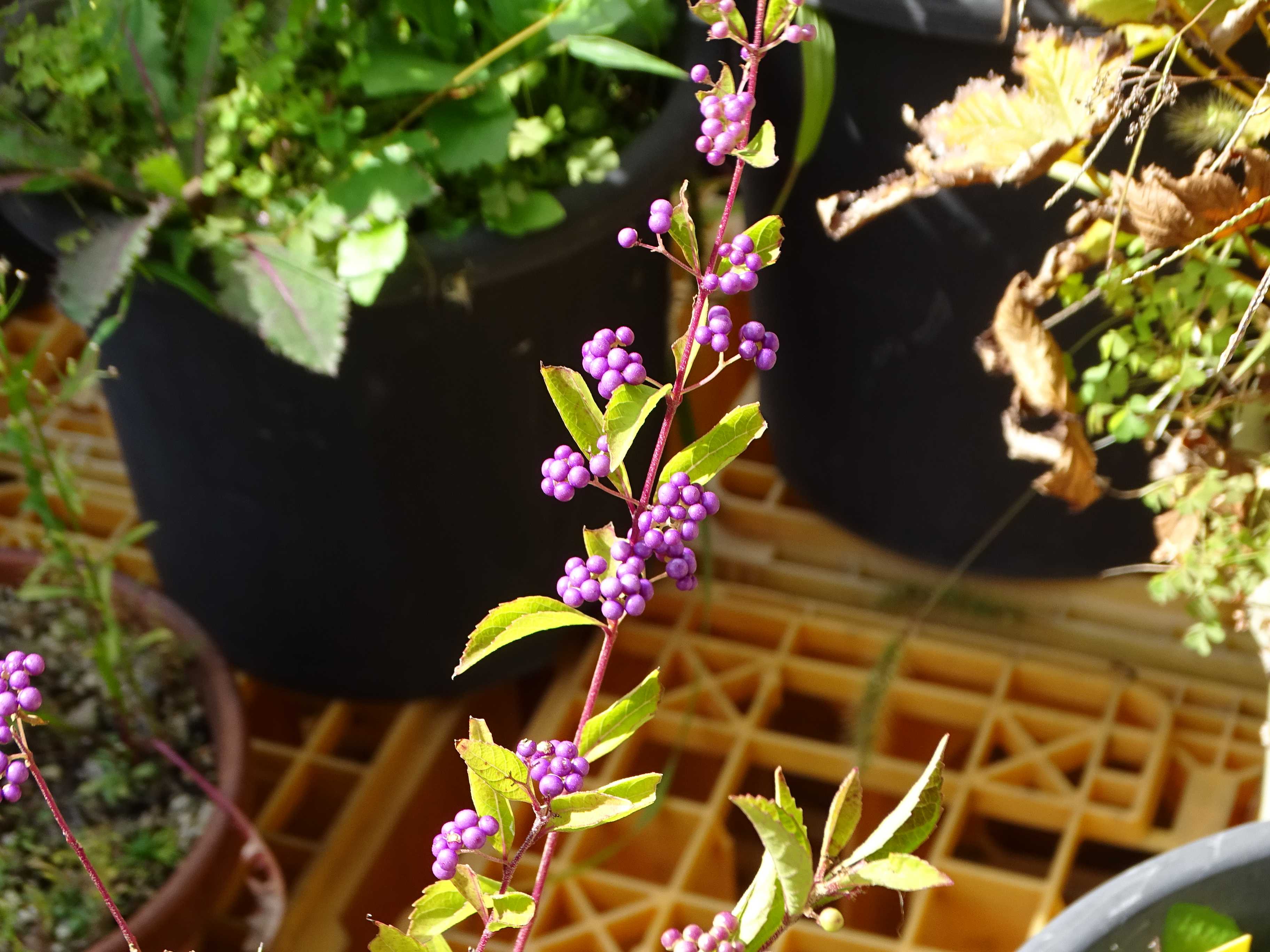 斑入り紫式部の紫々紫(シジムラサキ)でした・・・・が・・・花はいっぱい見せてくれたのですが