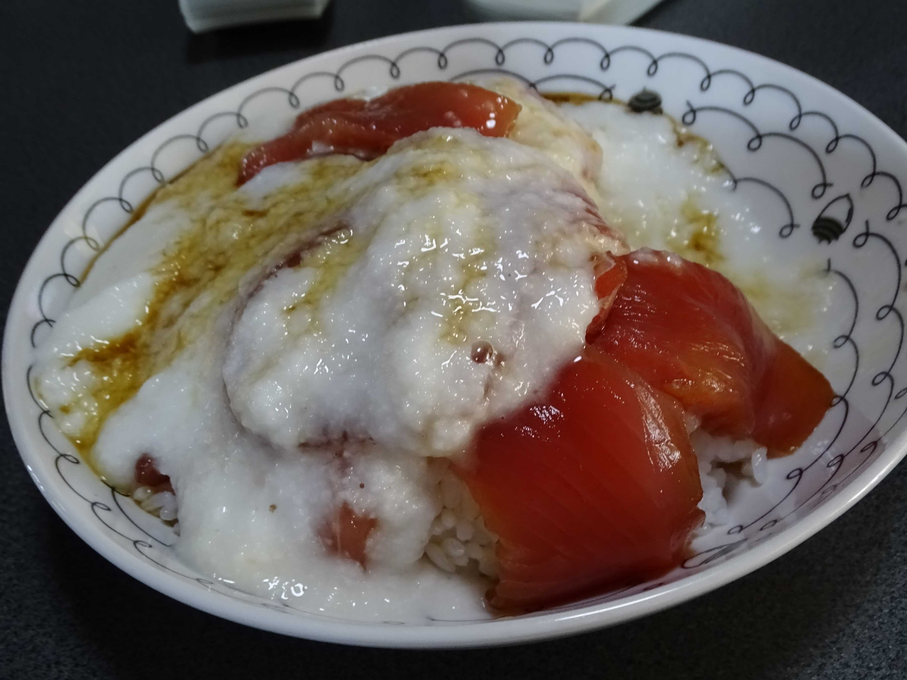 なんか久しぶりの 山かけ ・・鮪は買ってきて直ぐに漬けにしておいた
