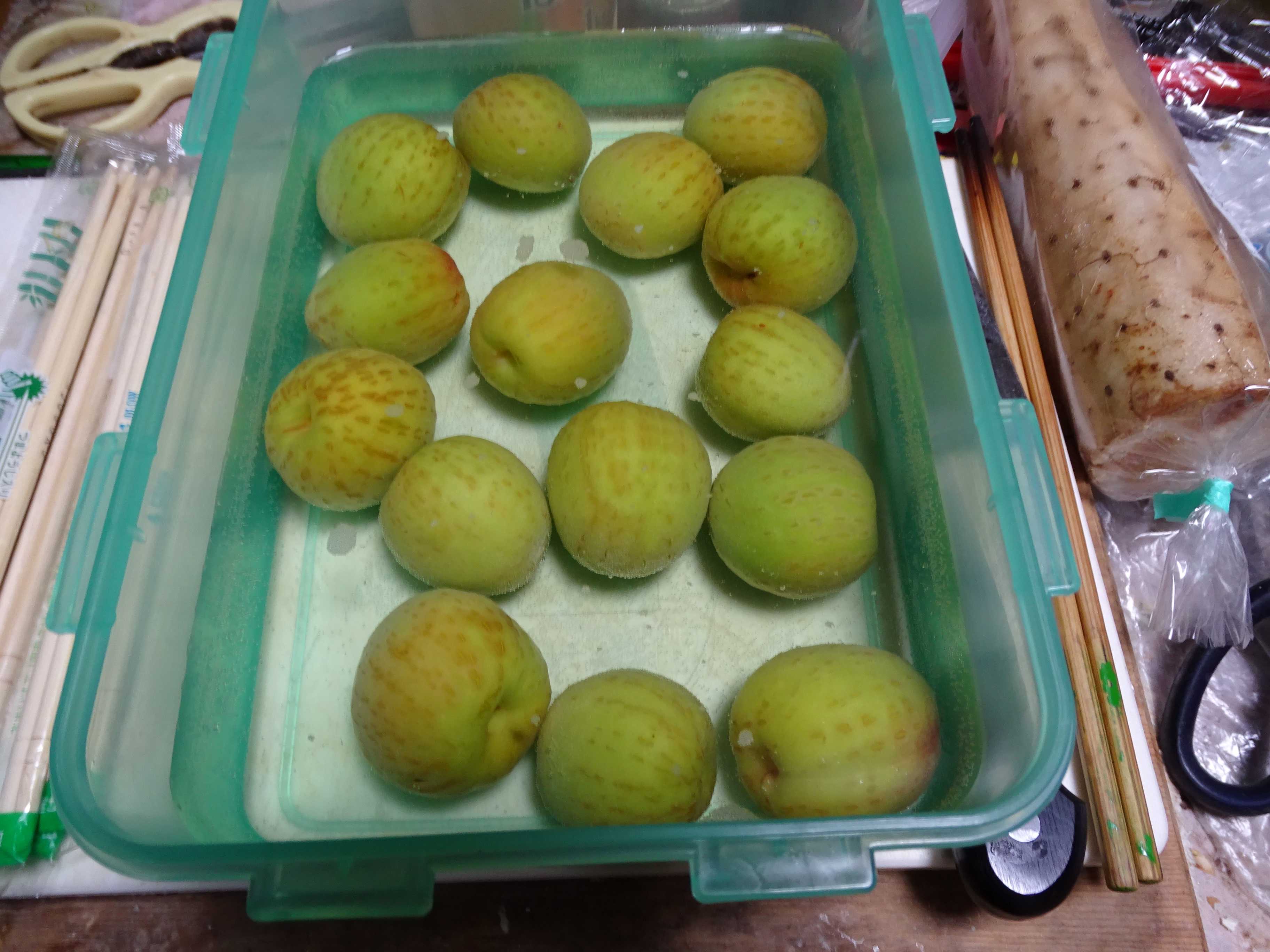 テンザライダーを使って梅の皮に穴をあけて・・・一晩水に浸けて・・・・