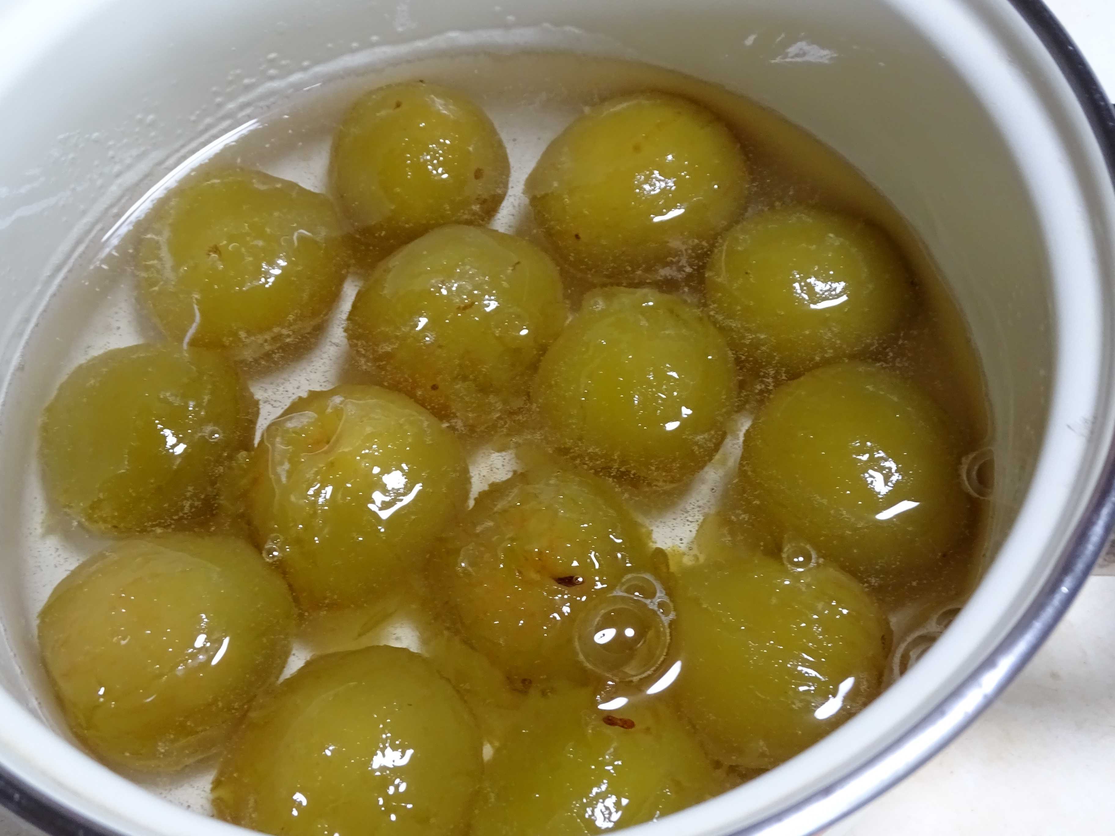 本当はもっと人数があればカミソリで青梅の薄皮を剥くんだけど・・そこは手抜きで