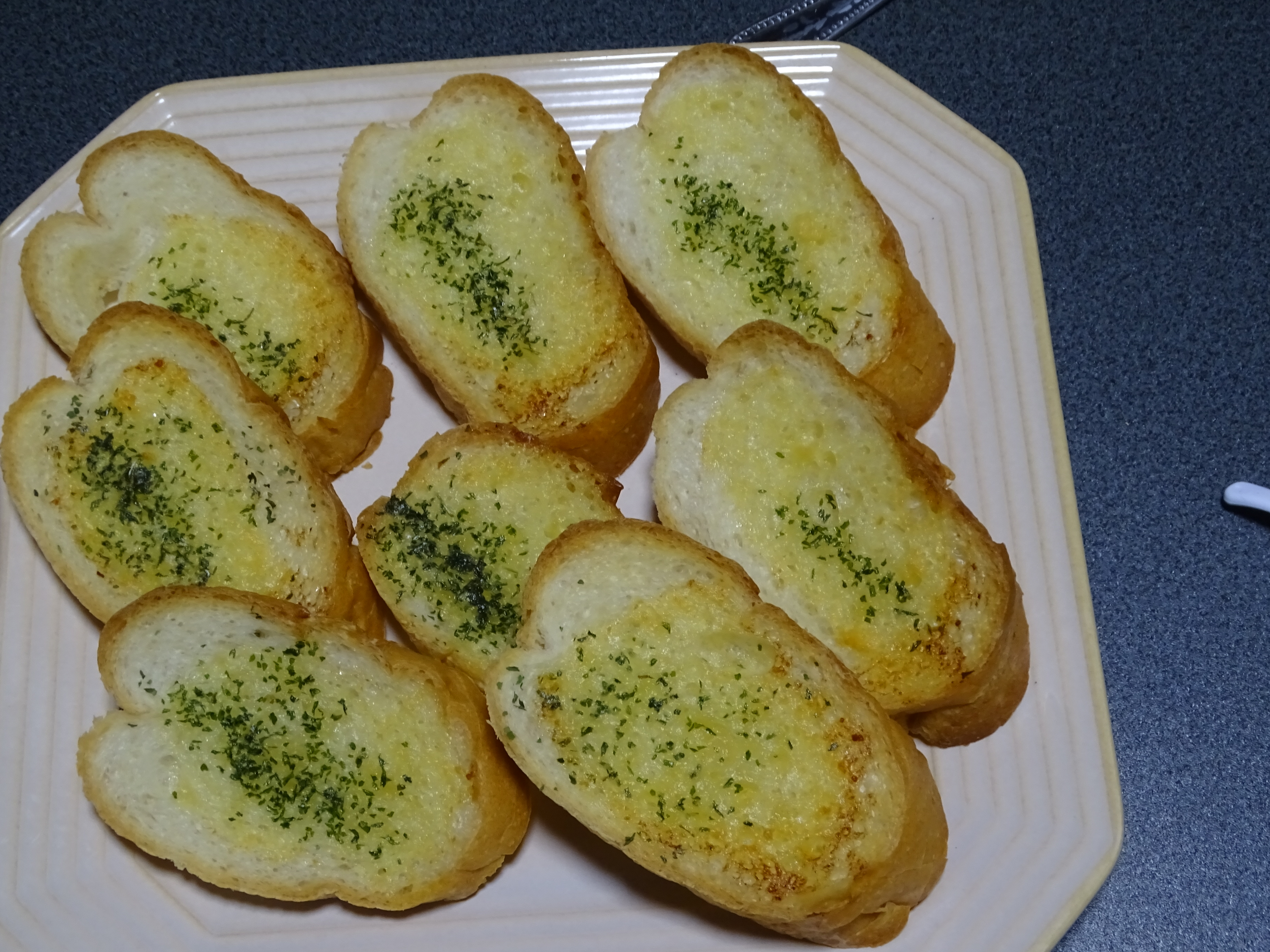 久しぶりのガーリックトースト・・・ちょっとバターが足りなかったかも