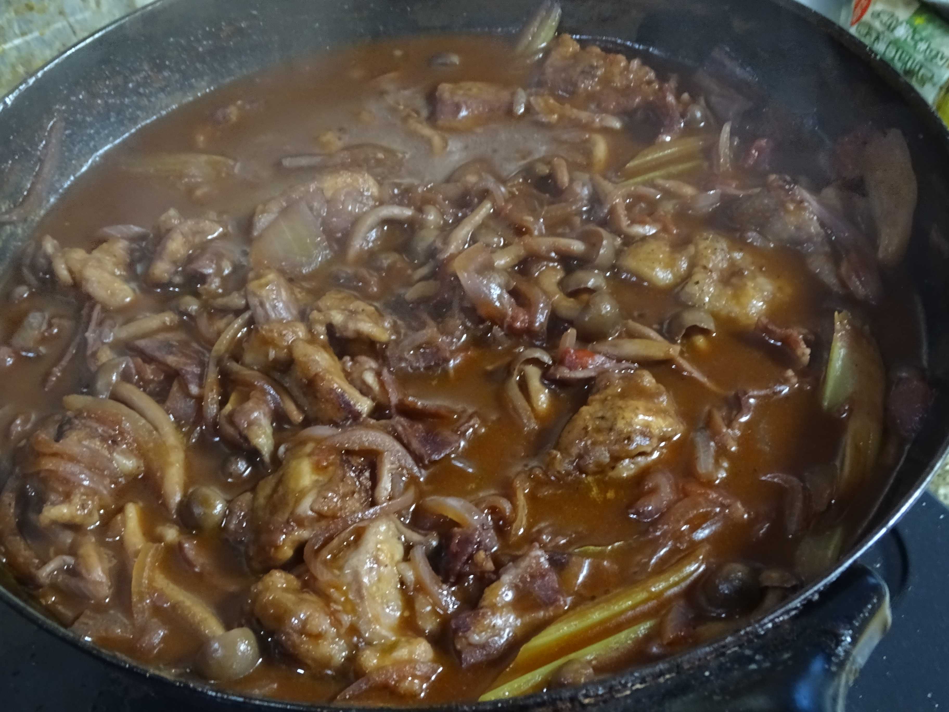 フランス系の煮込み料理=コック・オ・ヴァン=鶏の赤ワイン煮