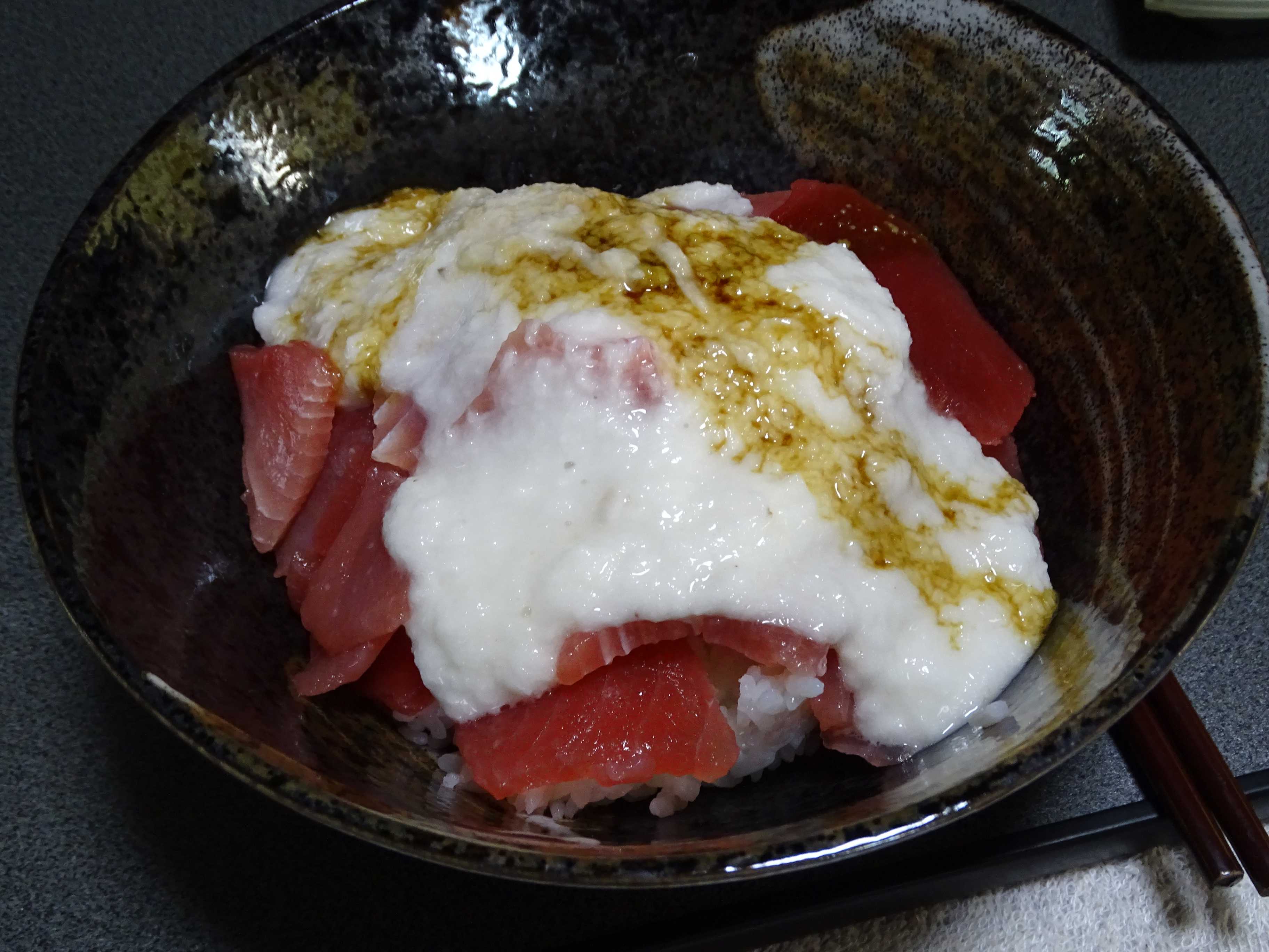 けど今日は鮪の切り身を買って来た・・で・・近くのスーパーで長芋を・・・