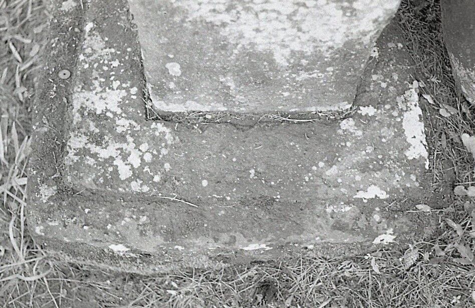 基礎は低く、側面素面とし、上面に高さ二・〇の低い段を設け、塔身を大入れの枘穴で受けている。枘穴の深さは三・五。