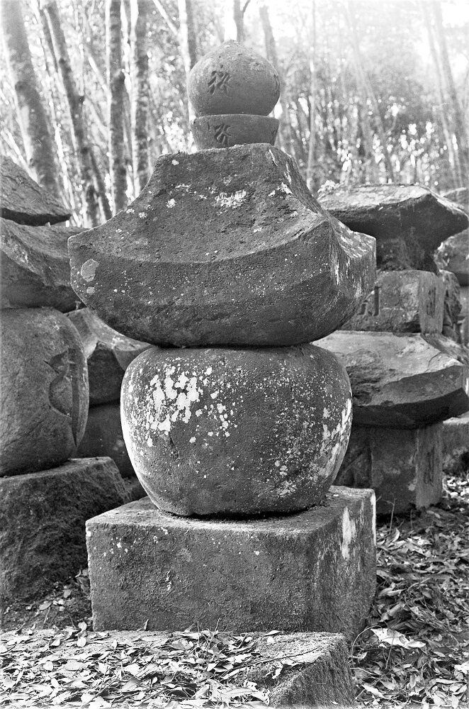 各輪正面のみに五輪塔五大、発心門の種字「ア」「バ」「ラ」を薬研彫りする。