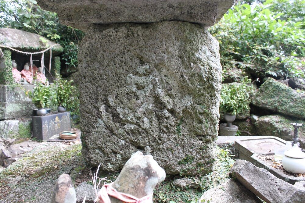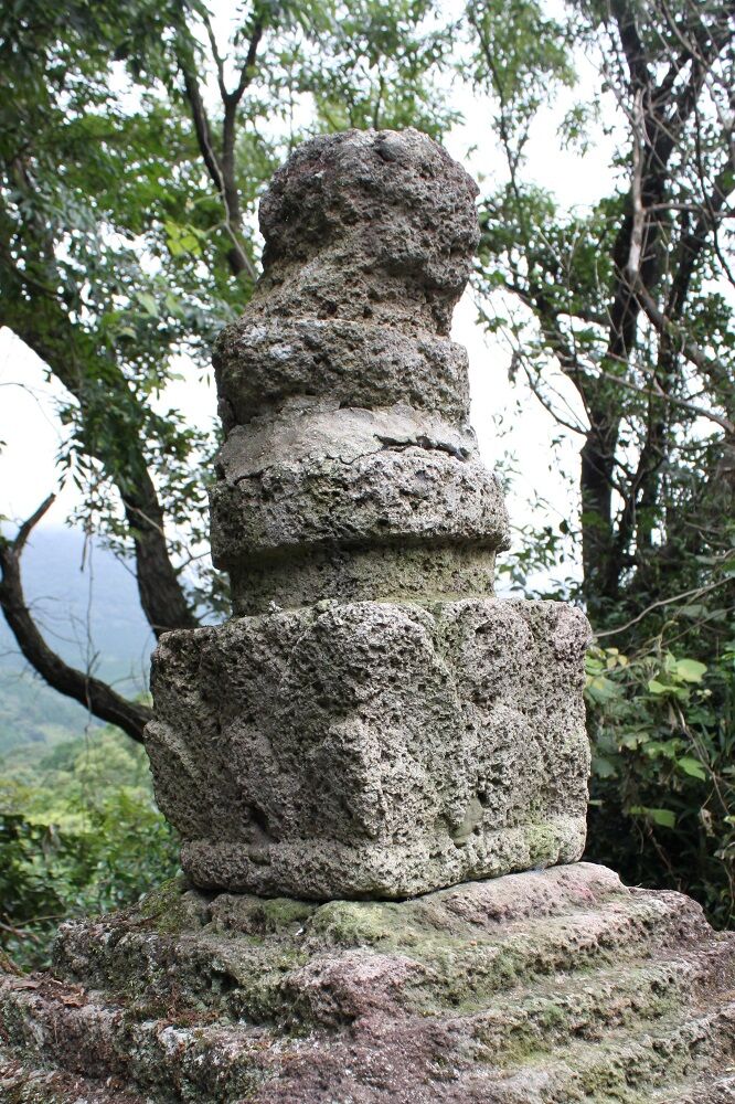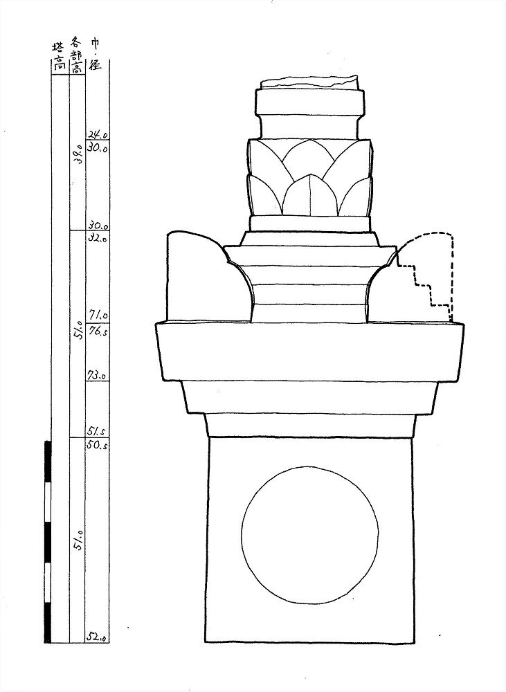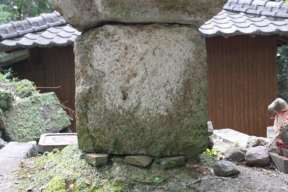 基礎は埋め込まれており、上面の造り出しはもと何段あったか確認できないほど欠損している。セメントで周囲を囲まれており、高さがどの程度あるのかも確認できない。また、各部とも摩耗や欠けて傷みがかなり進んでいる。
