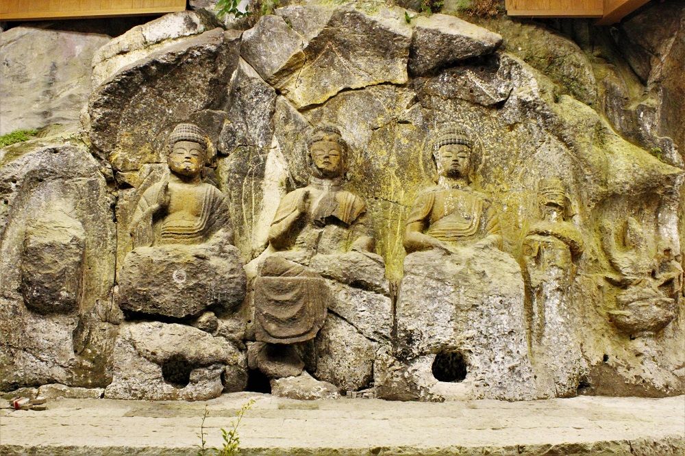 第6龕 堂ヶ迫 釈迦如来中心五尊磨崖仏 聖観音菩薩立像