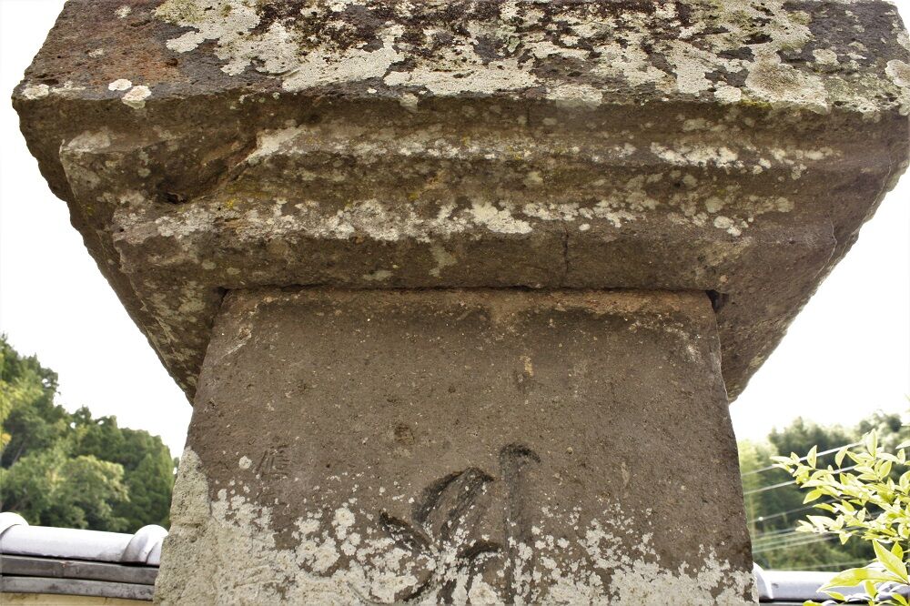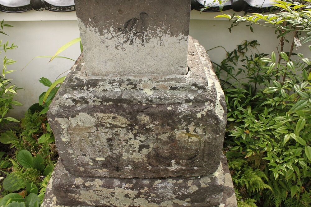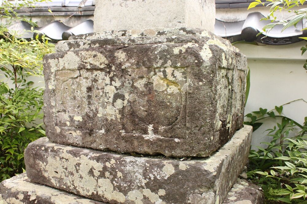 基礎は、上2段造り出し。側面幅は、下部幅より上部幅が0.5センチ大きい。この差は、当初の設計によるものかは不明。