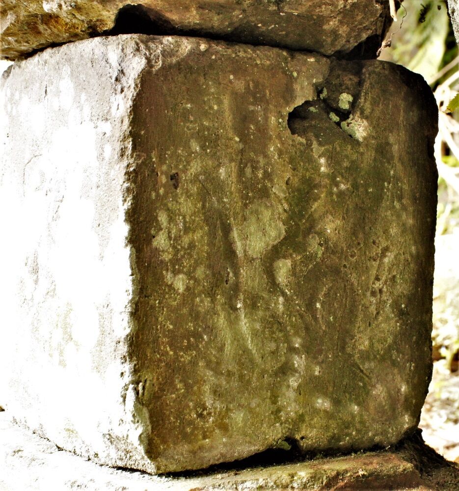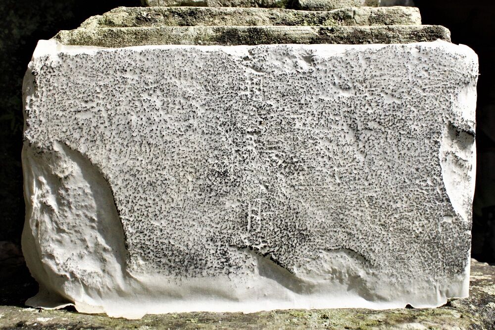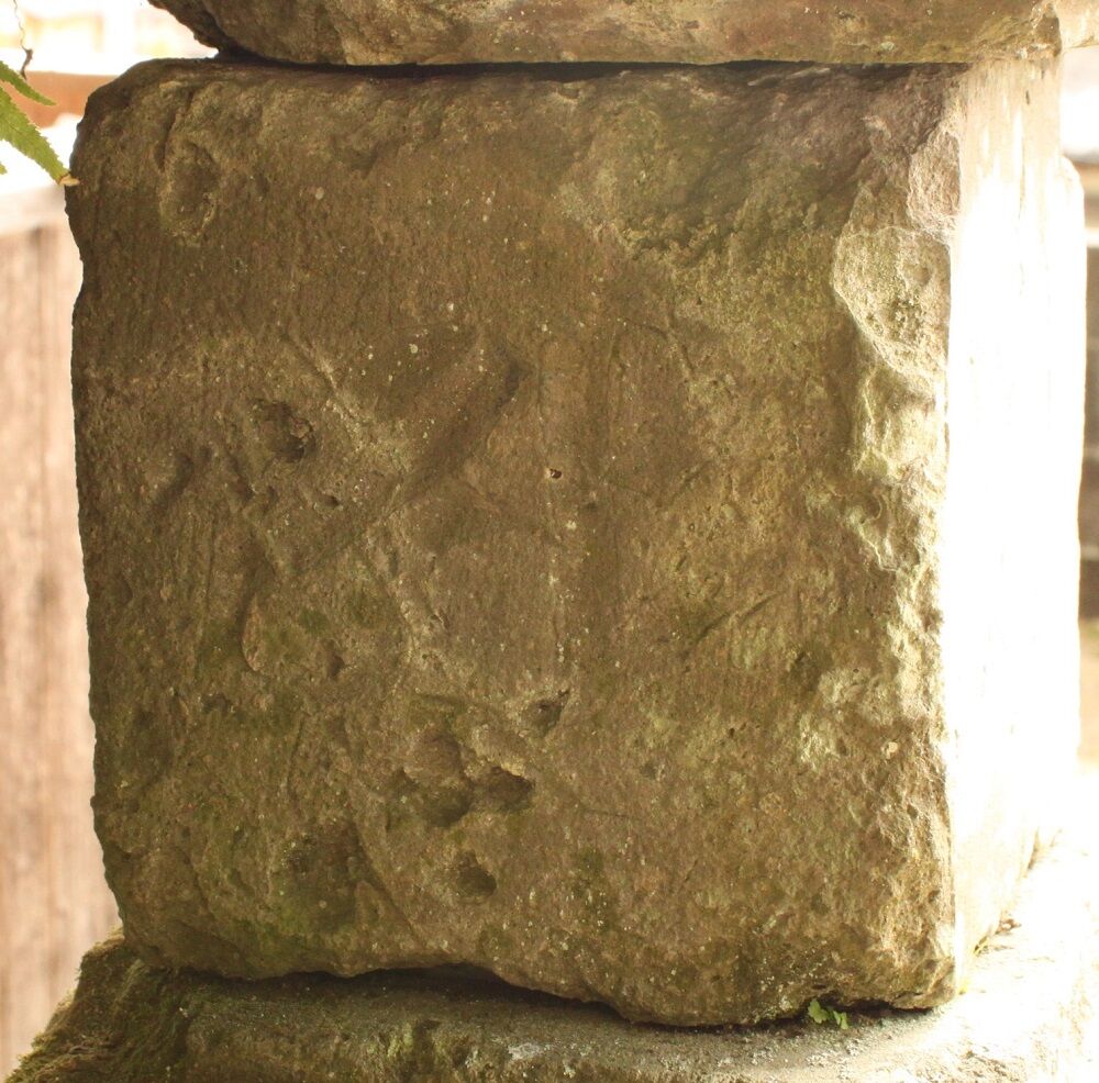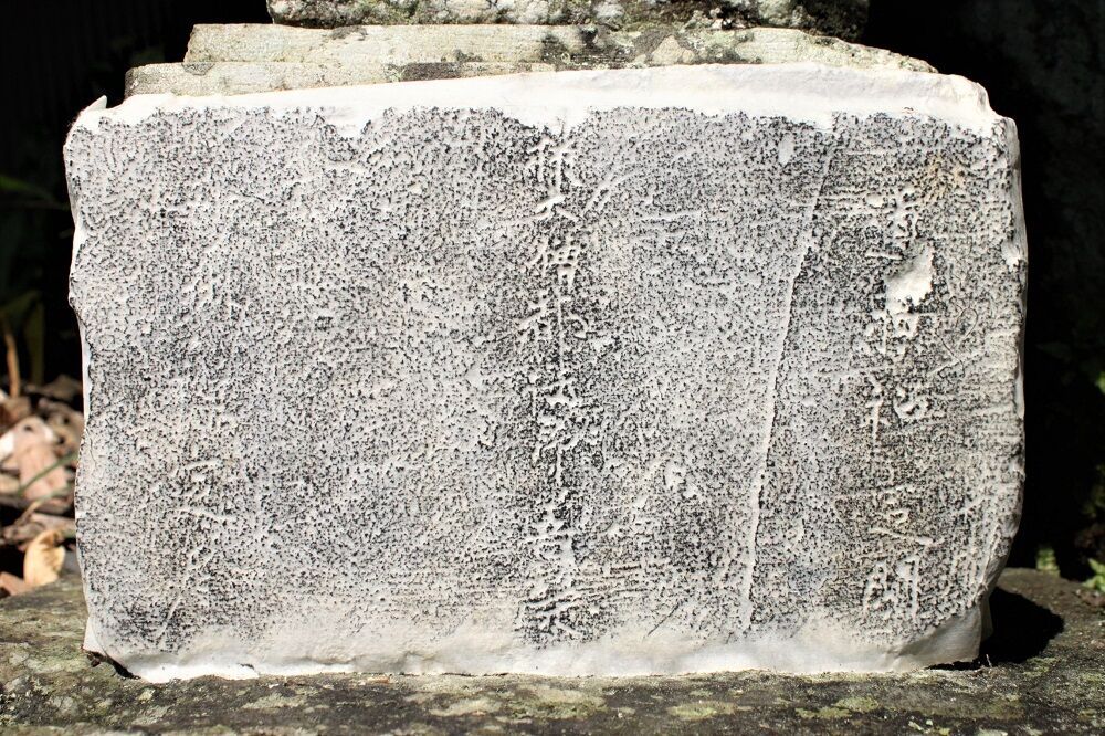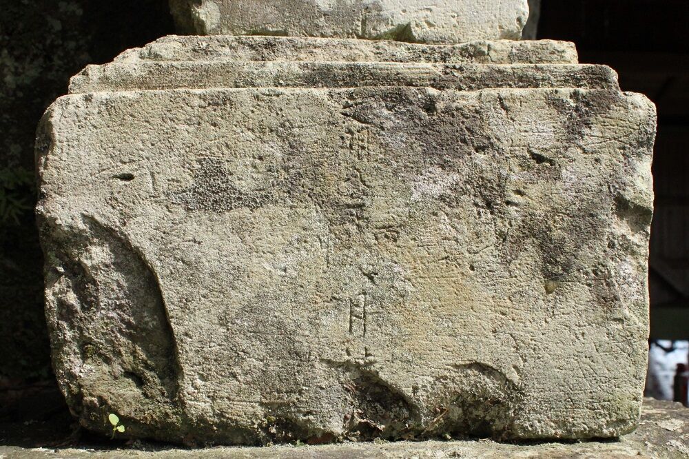 基礎正面と右側面に刻字がある。背面は、無地、左側面は表面破損のため不明。