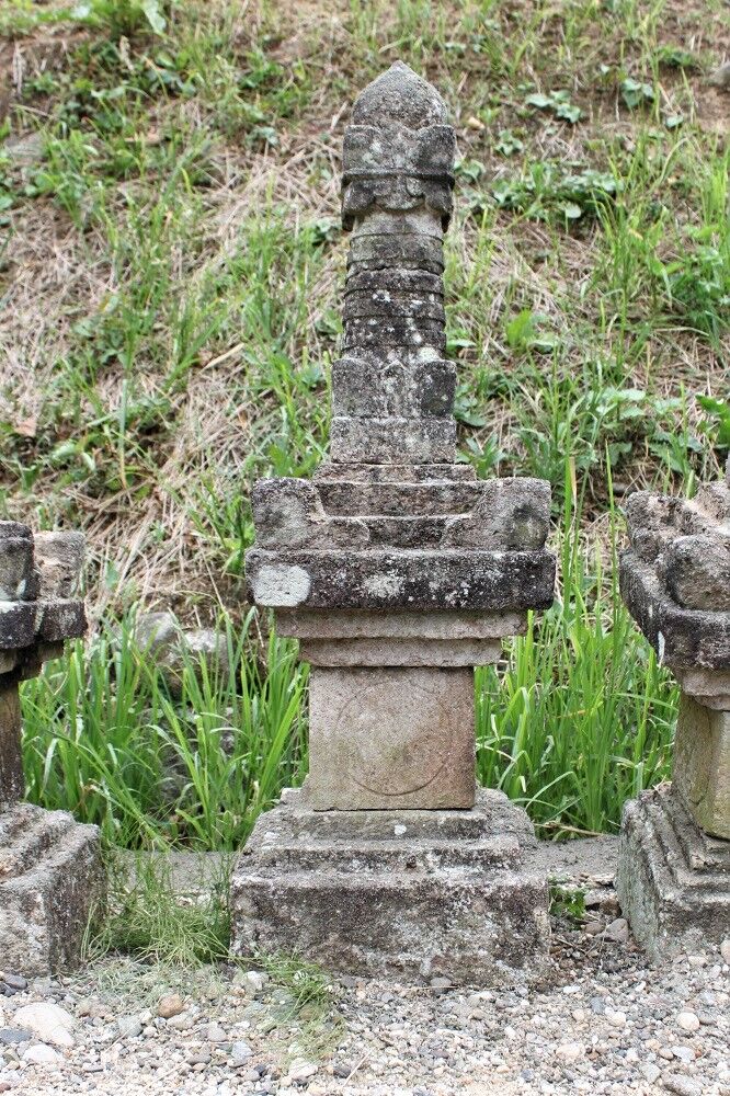 石塔群中、正面中央の塔。石材と各部の大きさは揃っていて、組合せに違和感はない。元から1具のものであった可能性も考えられるが、明確には確認できないのが惜しまれる。