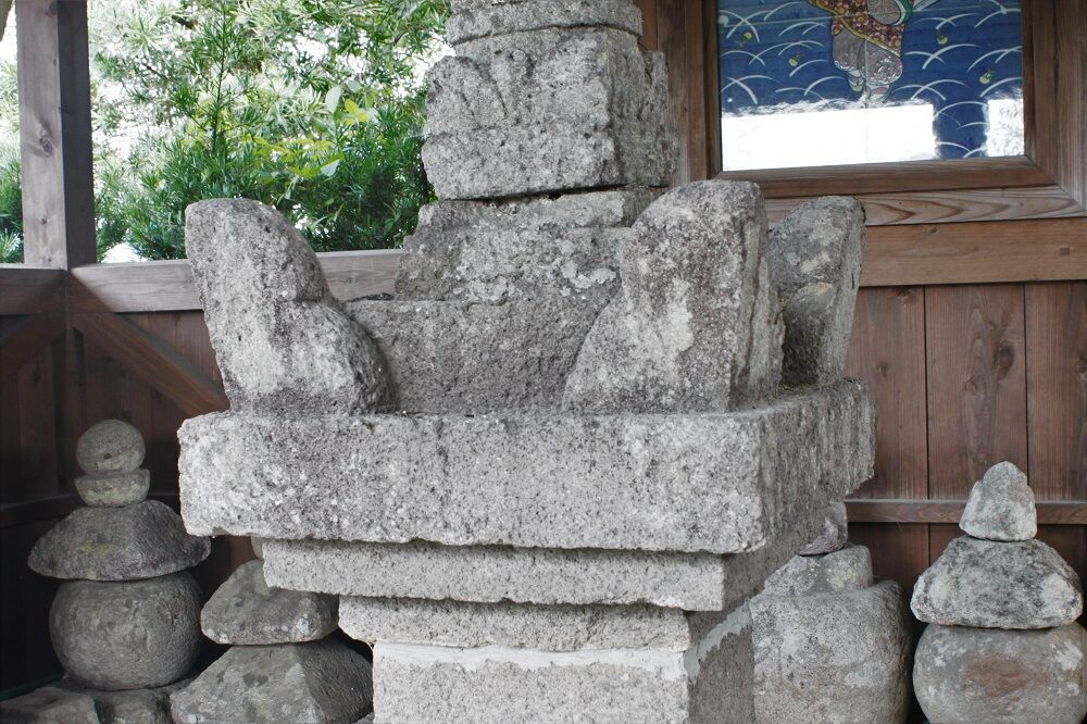 堂内の宝篋印塔の背後には、石塔残欠が集められている。南北朝時代末頃のものと思われる宝塔塔身や室町時代以降の五輪塔水輪、笠、宝篋印塔笠等が見られる。