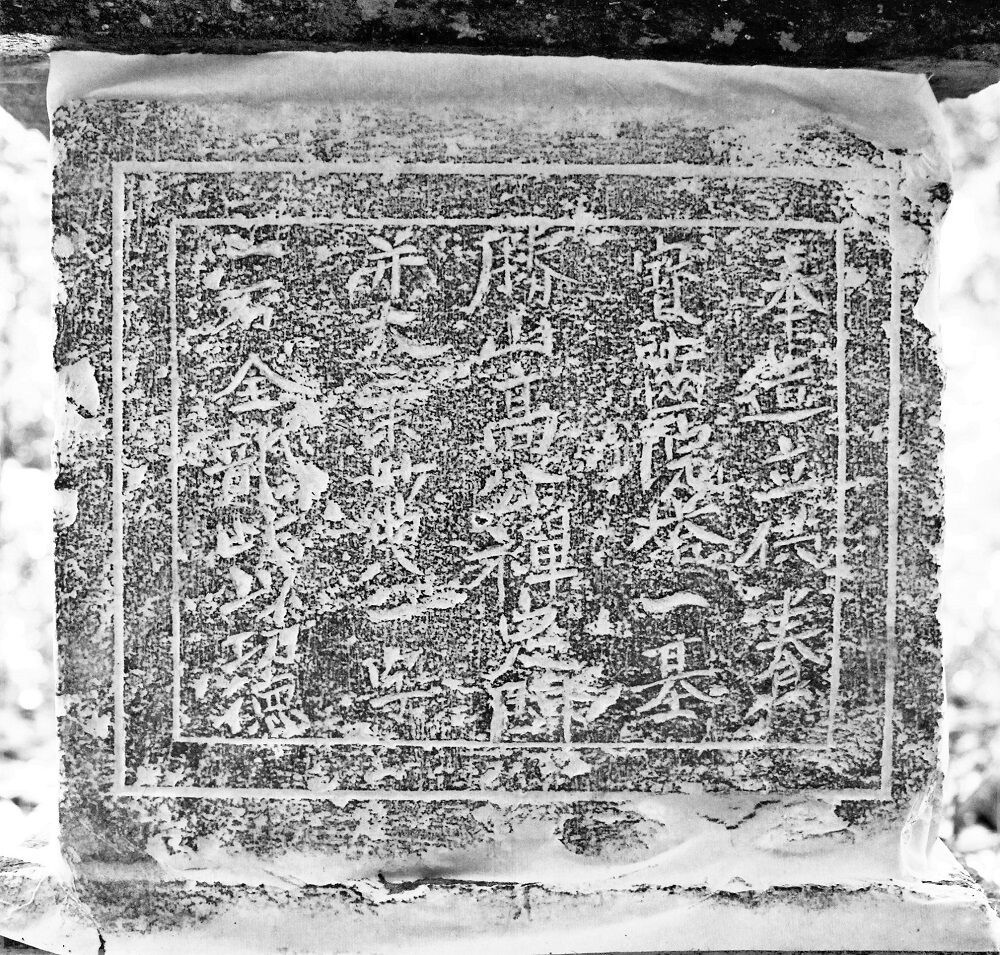 塔身は、高さより幅を大きく作る。基礎側面と同じく、下部幅より上部幅をわずかに大きくする。側面は、四方とも線刻で4角の輪郭を彫る。その内、正面1面だけは輪郭を2重にして、正面と右側面の2面に、各5行、計10行の銘を彫る。