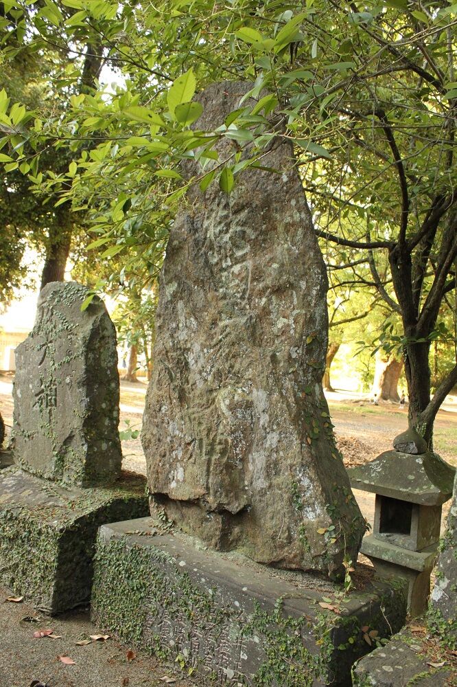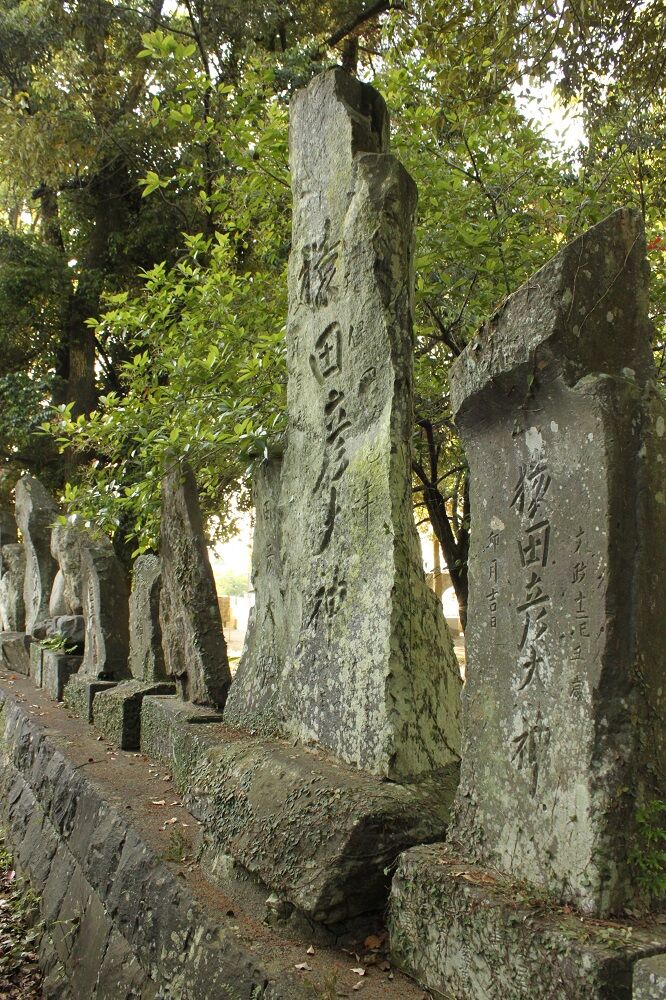 猿田彦碑群は、43基が神社本殿の裏手に並んでいる。そのうち、刻字のないものが1基含まれる。近隣に有ったものを、集めたものという。