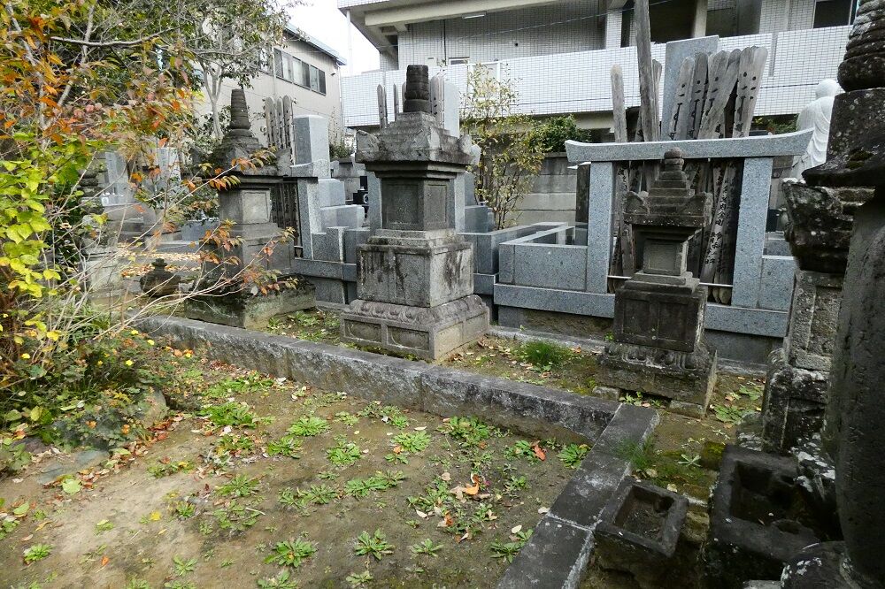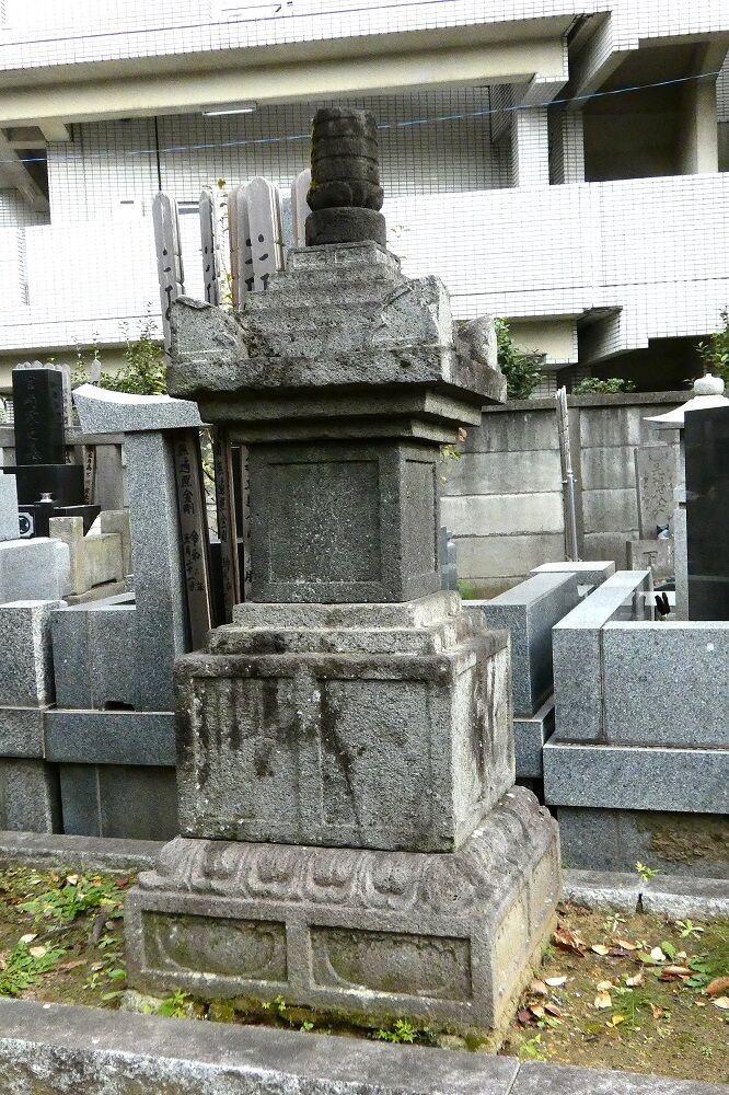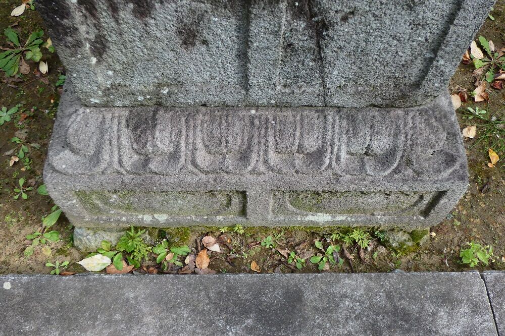 普賢寺の山門を入って直ぐ、向かって右側の墓域に、古塔を集めた小区画が設けられている。その区画の東側に3基並ぶ宝篋印塔の中央塔である。