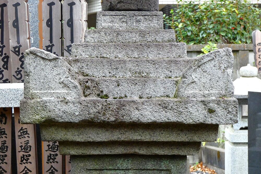 関東地方中世石塔に通常設けられている基壇は無い。相輪の上半分を欠失している。
