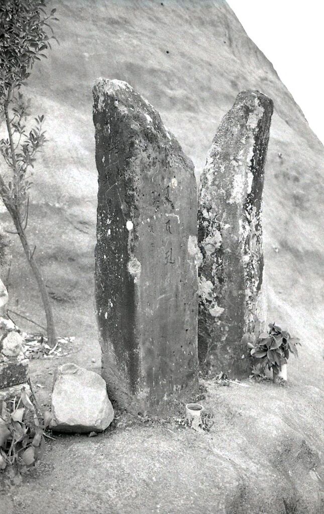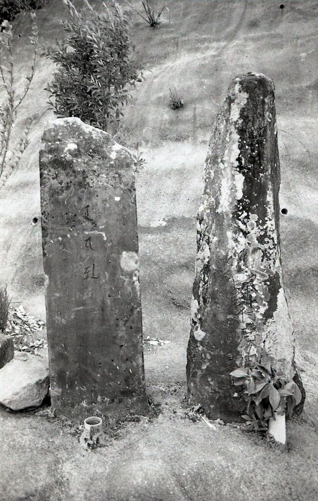 板碑の向かって右側の自然石塔婆。調査はできていないので、簡単に記す。