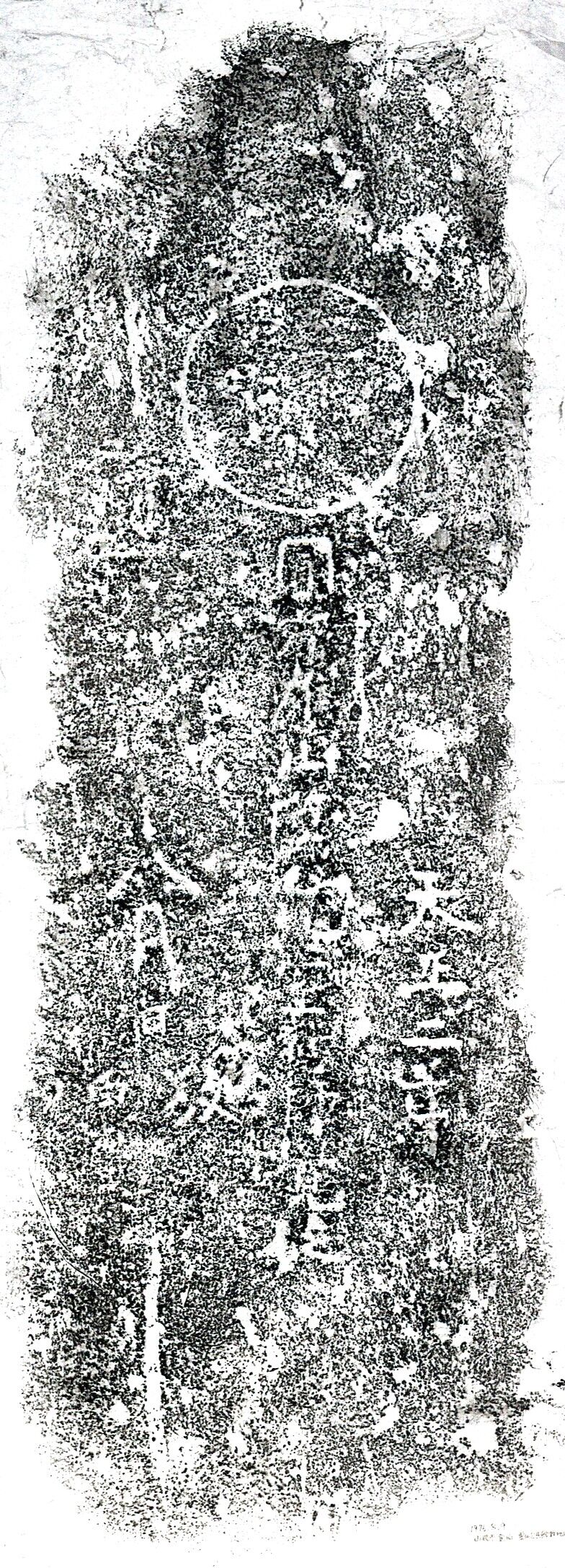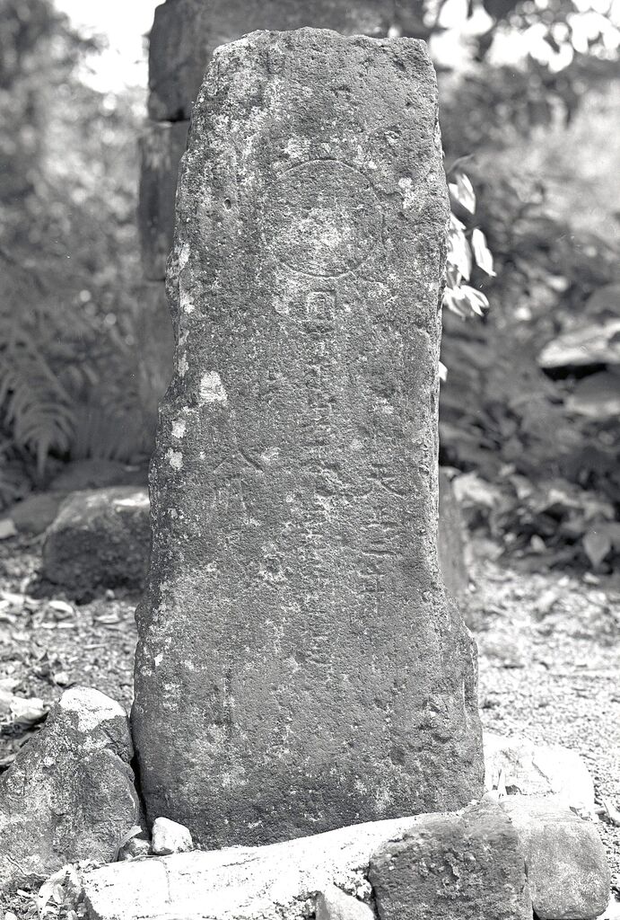 碑面上部に円相、その下に3行の刻字がある。碑面が荒れており、読めない字がある。