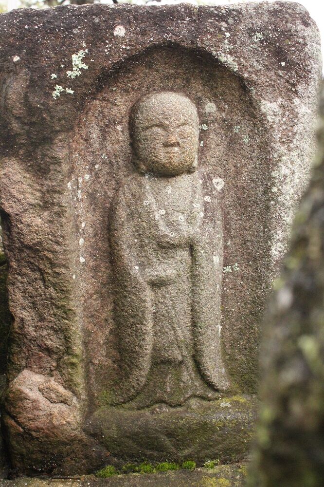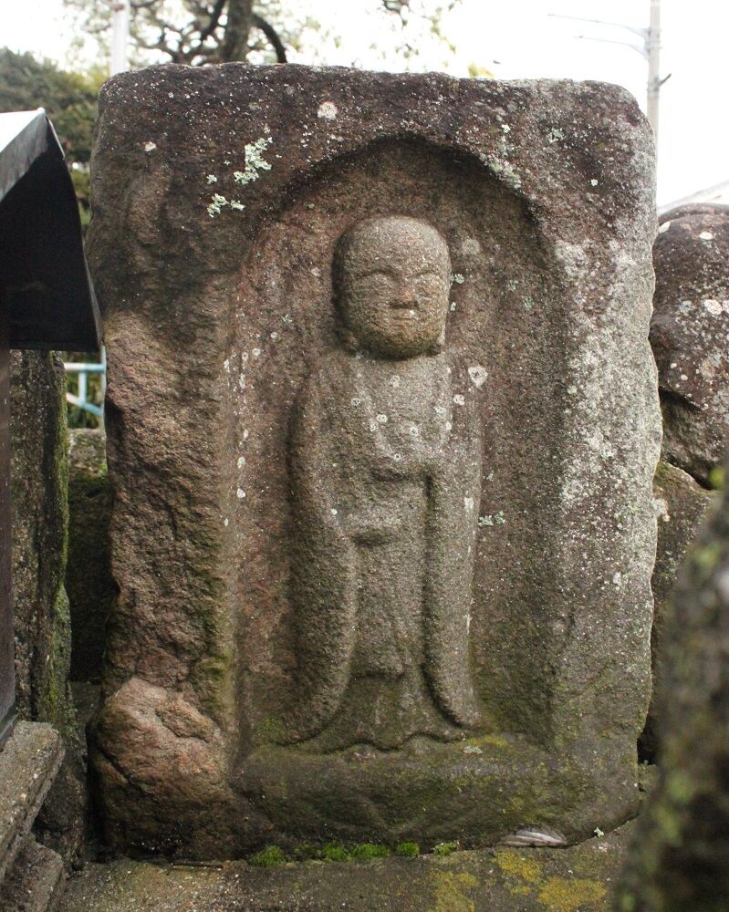 縦長の長方形一杯に連座上の蓮座下部の一部が少しセメントに埋っている。その碑面一杯に、舟形光背型龕を彫り込み、に右手錫杖、左掌宝珠の地蔵菩薩立像を半肉彫りする。童子形体躯、突き出した小さな口、衣文、大柄の手指、揃えた小さな足先、線刻蓮座など、像容から善教の作品と理解される。