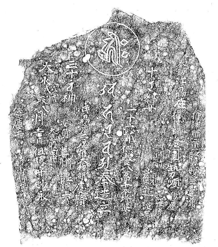 上端際に月輪内に種子「キリーク」を籠字に彫る。月輪上方が少し欠けているので、造立後に、碑上部が欠損したものかもしれない。