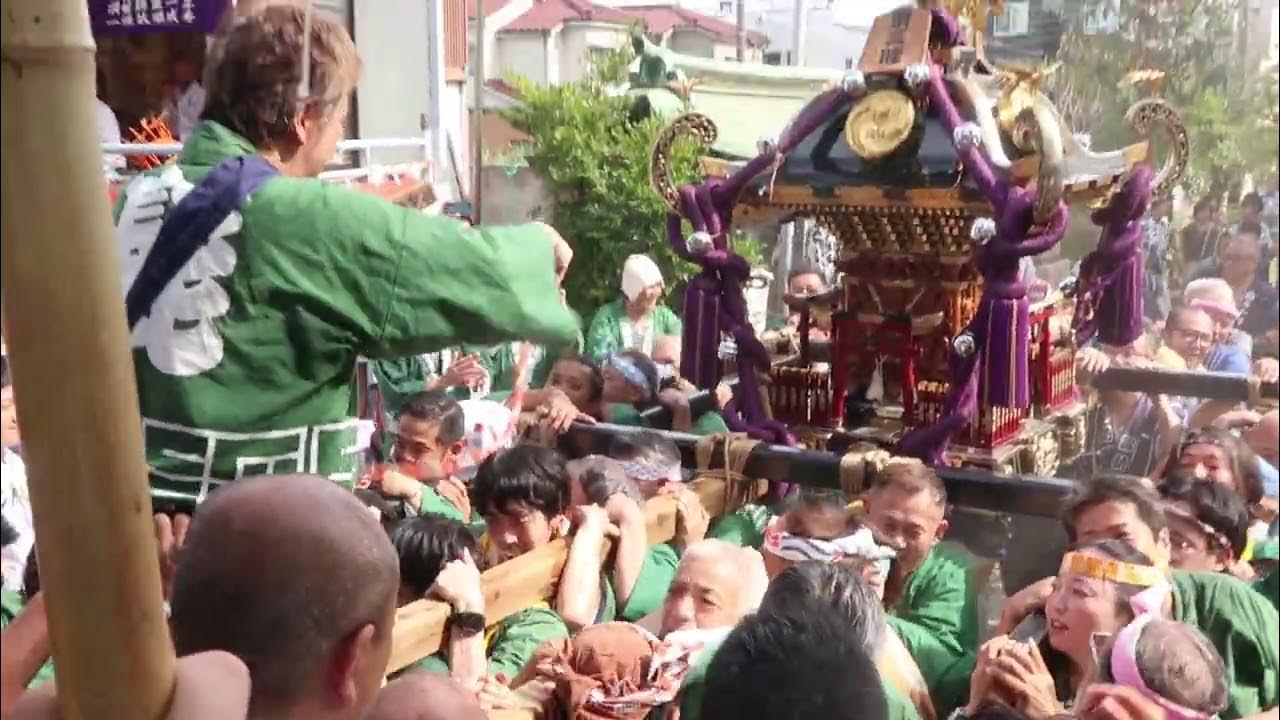 令和5年9月3日の墨田区白髭神社の祭礼の宮入りの様子です。