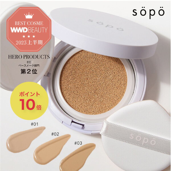 sopoのクッションファンデは高密着で、セミマット仕上げだから崩れにくさがポイントだよ!汗や皮脂にも強くて、一日中ヨレにくくキレイに見えるから安心して使えるよ。