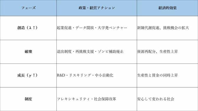 創造(Innovation)/破壊(Destruction)/成長(Growth)/制度(Institution)の循環が滞りなく回る社会こそが、変化を恐れず、変化を幸福へ変えられる社会