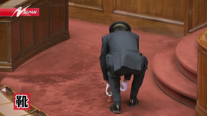 | 参院本会議場に靴、警官に唾…男3人を逮捕 特定秘密保護法の成立に反対し、過剰な妨害行為を行ったとして、警視庁麹町署は7日、静岡県島田市元島田、派遣社員岩橋健一容疑者(45)ら男3人を威力業務妨害や公務執行妨害の疑いで現行犯逮捕したと発表した。 発表によると、岩橋容疑者は6日午後10時50分頃、国会の参院本会議場で傍聴席からスニーカー1足を投げ入れ、審議を中断させた疑い。ほか2人は、国会周辺でデモ警備にあたる警察官に唾を吐きかけたり、体当たりした疑い。 読売新聞 12月7日(土)11時42分配信 http://headlines.yahoo.co.jp/hl?a=20131207-00000449-yom-soci |
