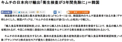 日本は韓国特定品目検疫免除中、もちろんキムチ含む