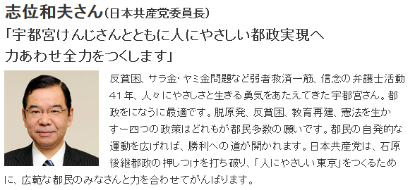 都知事選、共産が宇都宮氏を推薦 前日弁連会長