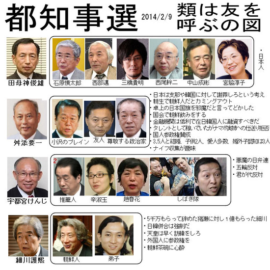 都知事選 類は友を呼ぶの図