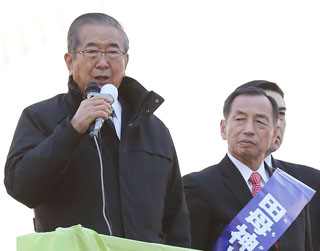 | 「マイクの調子が悪いなあ。壊れているのは韓国製だからじゃねえか」 のっけから、この調子だった。発言の主は日本維新の会・石原慎太郎共同代表(81)だ。 都知事選初日に田母神俊雄候補(65)の応援演説に駆けつけ、差別発言のオンパレード。 昼下がりの新橋SL広場で、通りがかったサラリーマンたちをドン引きさせていた。 石原は「“シナ”の植民地になりたくない。チベットみたいな国になりたくない」と聴衆に同意を求めると、「出てきている候補を見ると、変なヤツが多いねえ」と他候補批判を開始。 まず口汚く罵(ののし)ったのは細川・小泉の脱原発コンビだ。 「ワケの分からない殿様が出てきて原発を明日から止めろって。 これに火をつけた暇を持て余した小泉センセイ、これも単細胞」 原発を止めれば産業がダメになる、とひとしきり持論を展開すると、再び「この時期になって小泉とか細川というキチ×イが出てきて」と、とても活字にできない言葉を発するのだ。 矛先は、かつて外国人参政権の付与を主張していた舛添にも向かう。 「外国人に参政権を与えると、国籍のよく分からない候補者が言って。おっかない話だ」と、真偽不明のムチャクチャな批判を加えて、得意顔。誰も止めるヤツがいないのか、石原の暴言演説は20分以上に及び、さすがの田母神も何度も腕時計を確認しながら、苦笑していた。 こんなイカれた老人が2年前まで現職の都知事だったのだから、背筋が寒くなる。 この日の応援演説には、ビンタ騒動で渦中のデヴィ夫人も登場。 「女性を平手打ちしたデヴィ・スカルノです」と、シレッと挨拶していた。まさに「キワモノ選挙」という表現がピッタリの田母神陣営の街頭演説。怖いモノ見たさの人は、どうぞ、ご勝手に。
