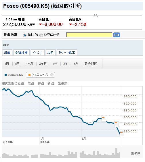 &ポスコの株価大暴落wwwwwwwwww