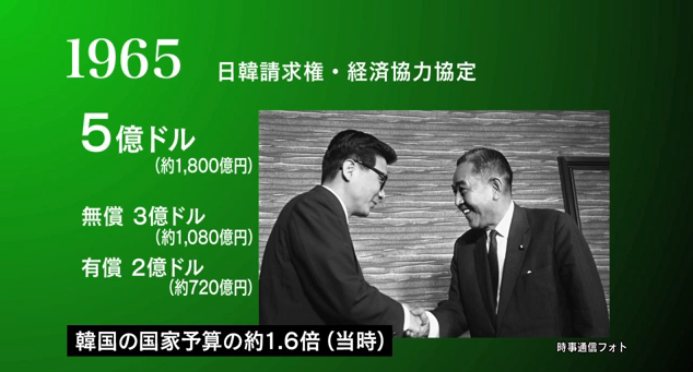 日本は韓国の国家予算の1.6倍の経済協力をしたこと、