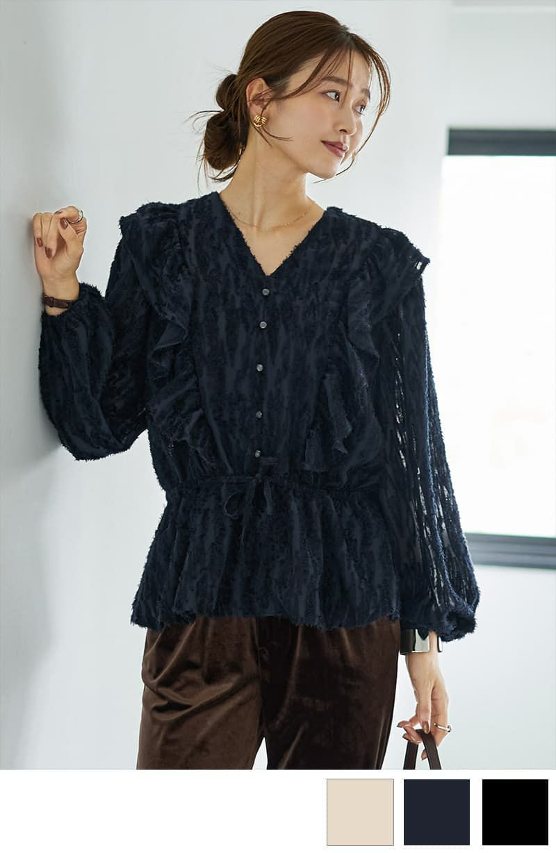 LUXE 柄状フリンジシアーブラウス