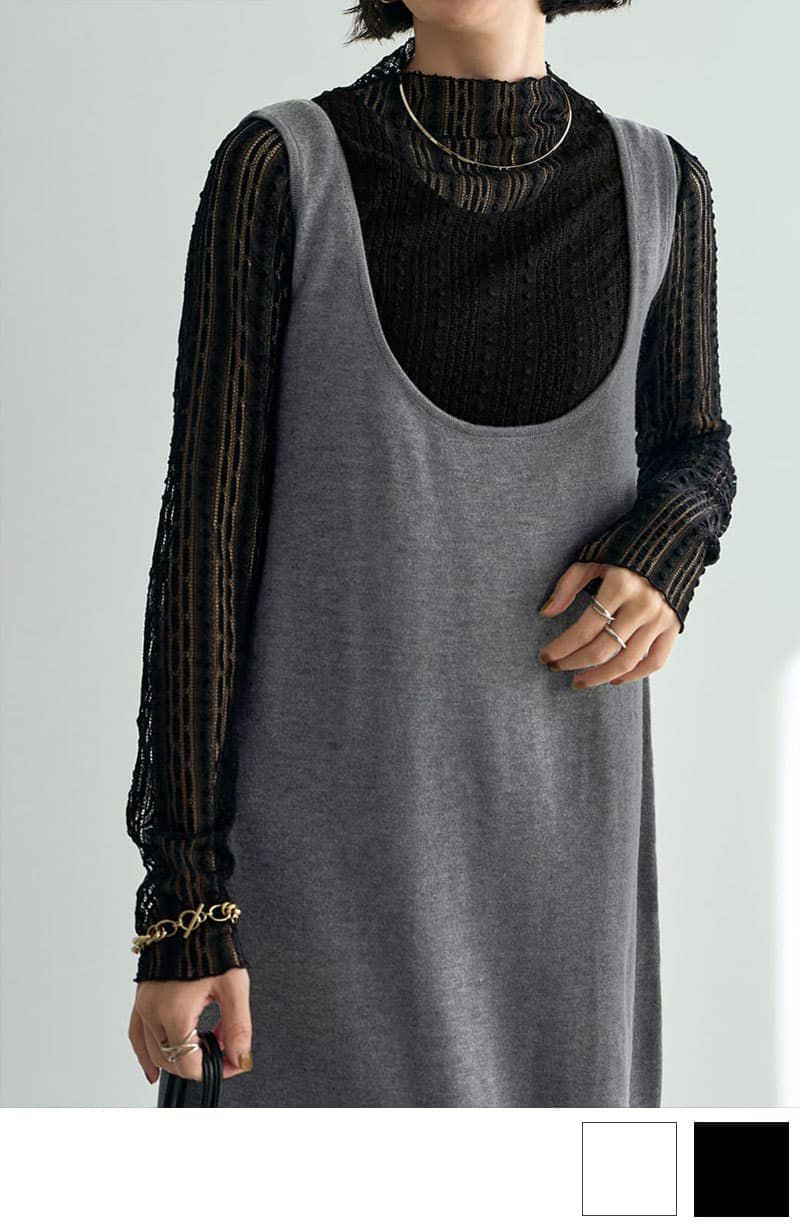ペタッとしているドット柄はともするとチープにも見えることがありますが、この素材感のおかげで高見えします。