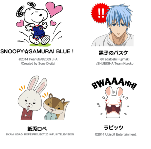 SNOOPY☆SAMURAI BLUE!、黒子のバスケ、紙兎ロペ、ラビッツの4種類が登場!