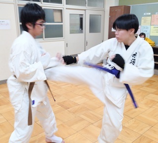 そして、最後は、今月は柔空会での交流会、そして来月は誠空会の第一回格闘空手交流大会があるので、組手をしてもらう事に![]()
