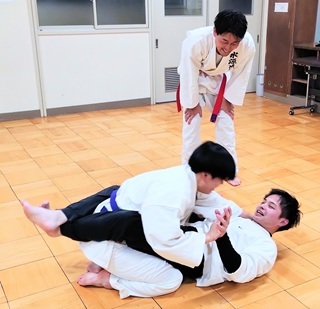 水源流拳法では今、少し稽古内容を黒帯から色帯に降ろし、総合格闘技、所謂、上段突き・投技・関節技・寝技なども教えていっております。