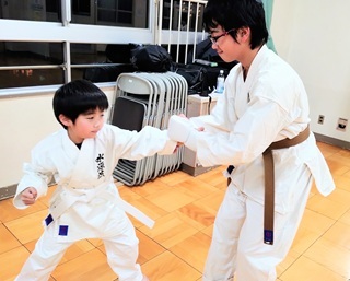 それに交じってやる気十分の白帯くんも一緒に組手??!!(笑