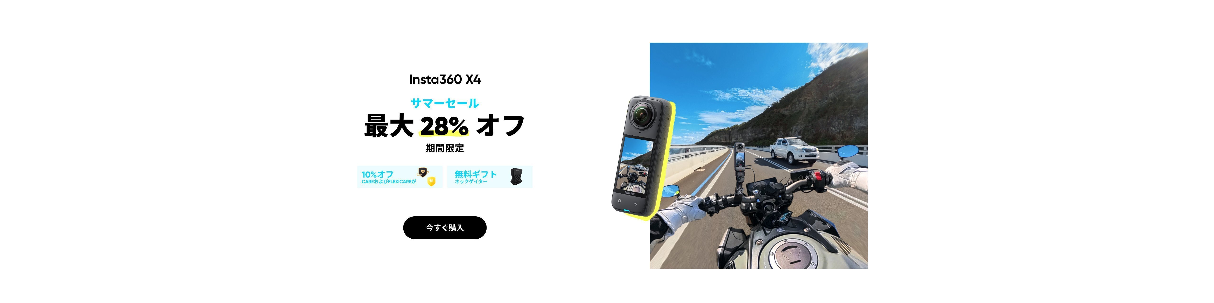 | Insta360 X4 | 限定82%オフ +限定6ヶ月200GB無料Insta360+クラウドストレージ 114cmインビジブルセルフィースティック x 1 (適用:BMW Motorrad限定版, 標準セット) Insta360 X4画面保護フィルム x 1 (適用:BMW Motorrad限定版, 標準セット以外) |
