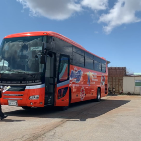 本日はツアーバス昼食会場到着です