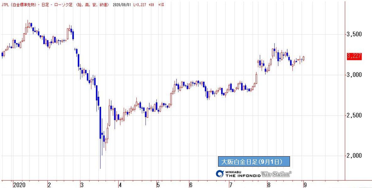 NY白金は前週末比-2.10ドルの937.90ドル(9月1日時点)