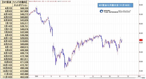 NY原油の日足チャートとファンドの動向の載せておきます。