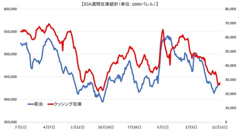 今現在、EIAが毎週発表している原油在庫は取り崩されていますが