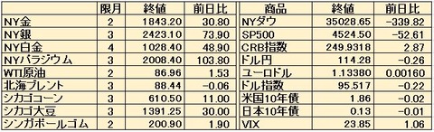 このところの売られ過ぎ感も浮上する中、ダウは堅調に推移しましたが、買い一巡後は原油相場の高止まりを眺めてインフレ懸念が広がる中、景気敏感株を中心に売りが膨らみ、マイナス圏で終えました。