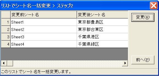 5.変更前、変更後のシート名を確認し、変更をクリックします。